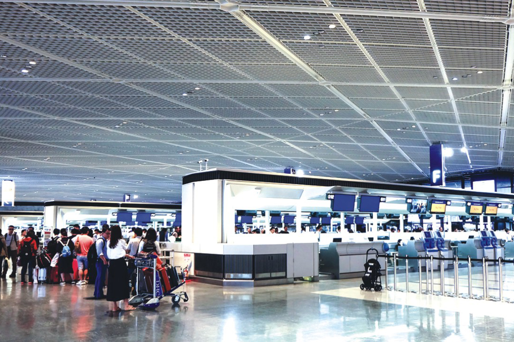 格栅天花系列主骨、副骨纵横分布,由格与格的连续组合所构成的吊顶天花,能舒缓由于封闭式所造成的压抑感,令视觉效果连续平整,结构严谨。可根据色彩、规格、施工方法及照明能装饰出各种千变万化的天花吊顶。格栅天花,通风性能好,通透式结构,纵横交错的天花主副骨组合方格,线条挺直经纬分明,具有掩饰视觉方向感,能有效舒缓空间带来的压抑感,适合大面积场所使用安装。