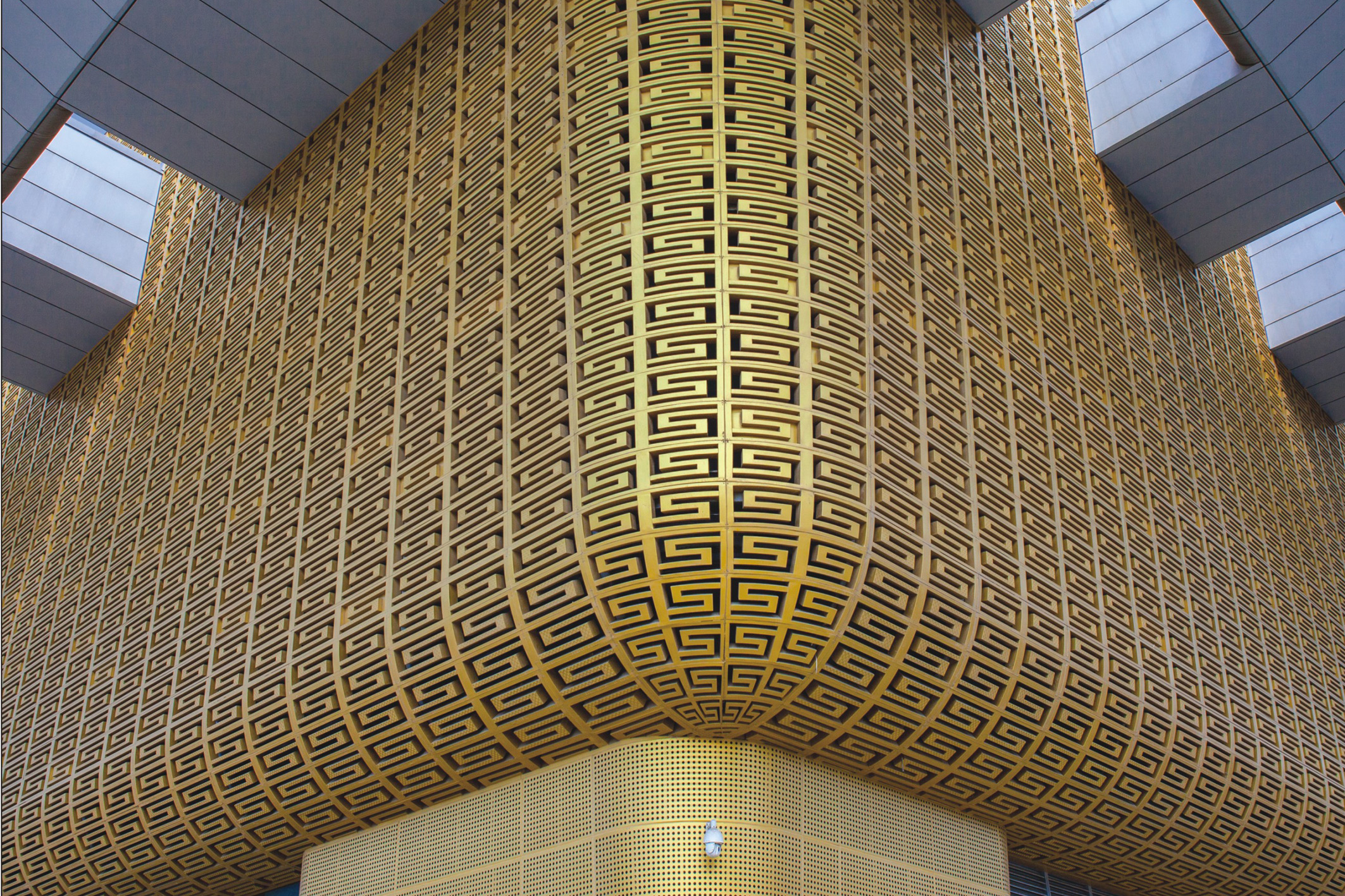 镂空作为一种雕刻技术,需要精湛且细腻的工艺。设计师巧妙地将这一元素融入现代建筑装饰中为我们带来时尚且个性的装饰艺术。雕刻板能够使平面板材不断延伸深入空间感,有透光、透气的作用。不同图案、大小疏密的孔型变化搭配使物面产生动感,结合不同外形环境进行异型处理令线条更为明快、飘逸,突破传统造型概念,更适合各种现代高级会所、办公等多种场合。为充满活力的时尚一族开辟了无穷无尽的思维空间,确是实用又美观的新型装饰形式。